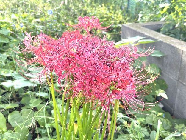 〇学校の畑付近にヒガンバナが咲いていました。秋の風に揺られていました。