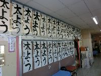 〇「校内書きぞめ展」全校児童のそれぞれの力作が、廊下に展示されました。