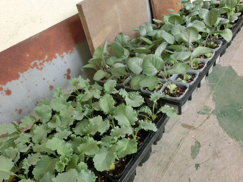 〇ヨーロッパ野菜の植え付けをします。近年さいたま市でも栽培が盛んになってきました。カリフローレ(白・紫)とカリーノケールです。